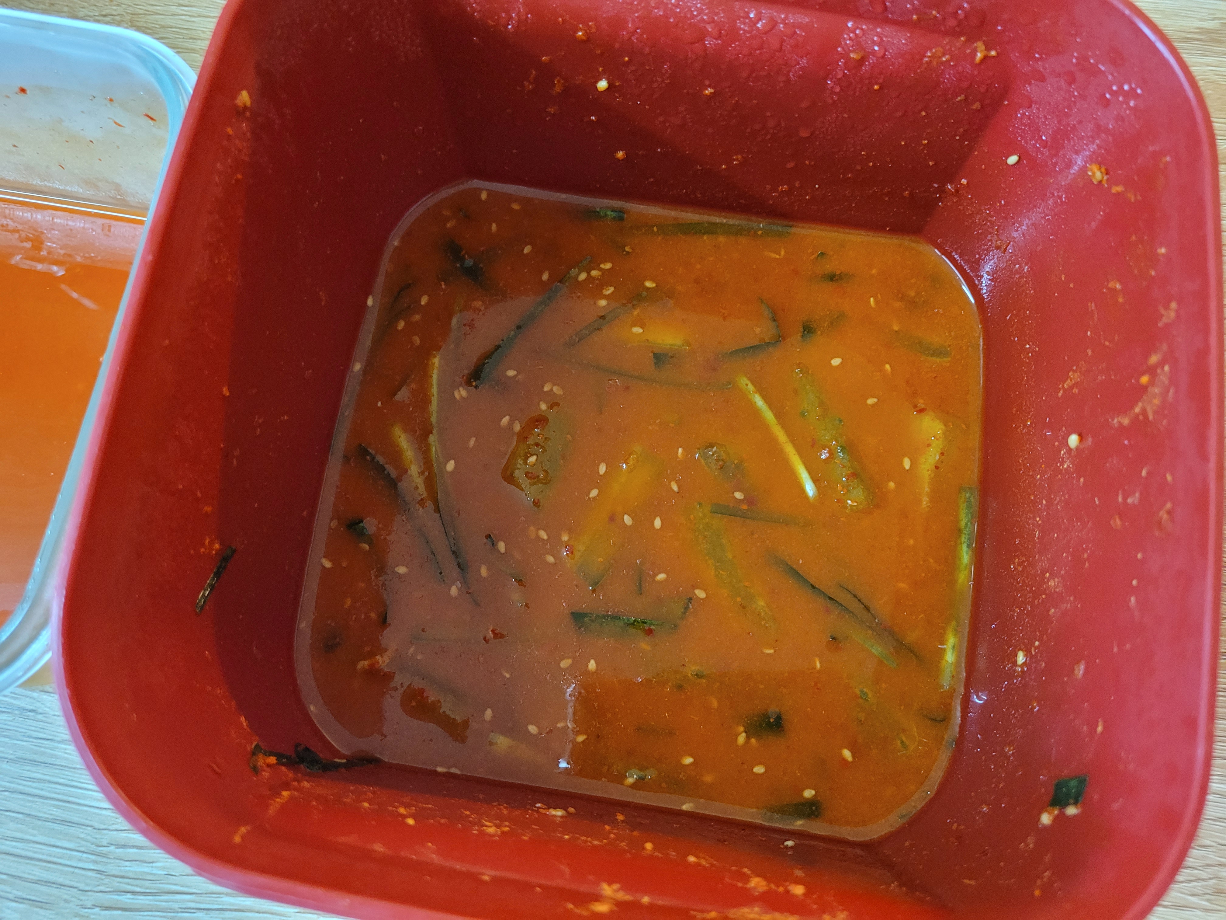 열무김치 국물이 모자라 섞어 먹으려고 합니다.