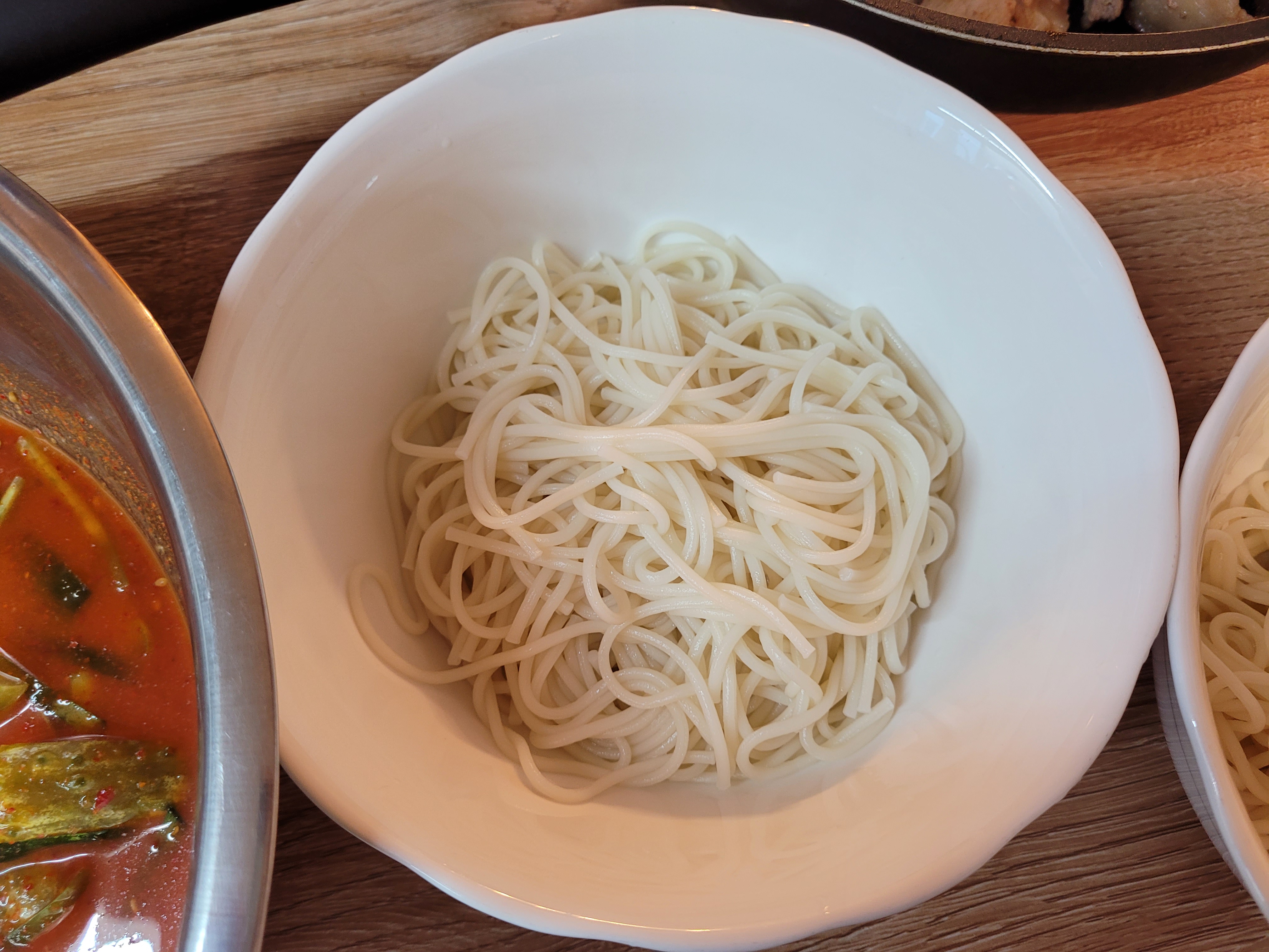 물이 팔팔 끓을 때 면을 넣고 면이 붙지 않도록 살살 저어주며 5분 정도 삶아주고 찬물에 헹구어 줍니다.