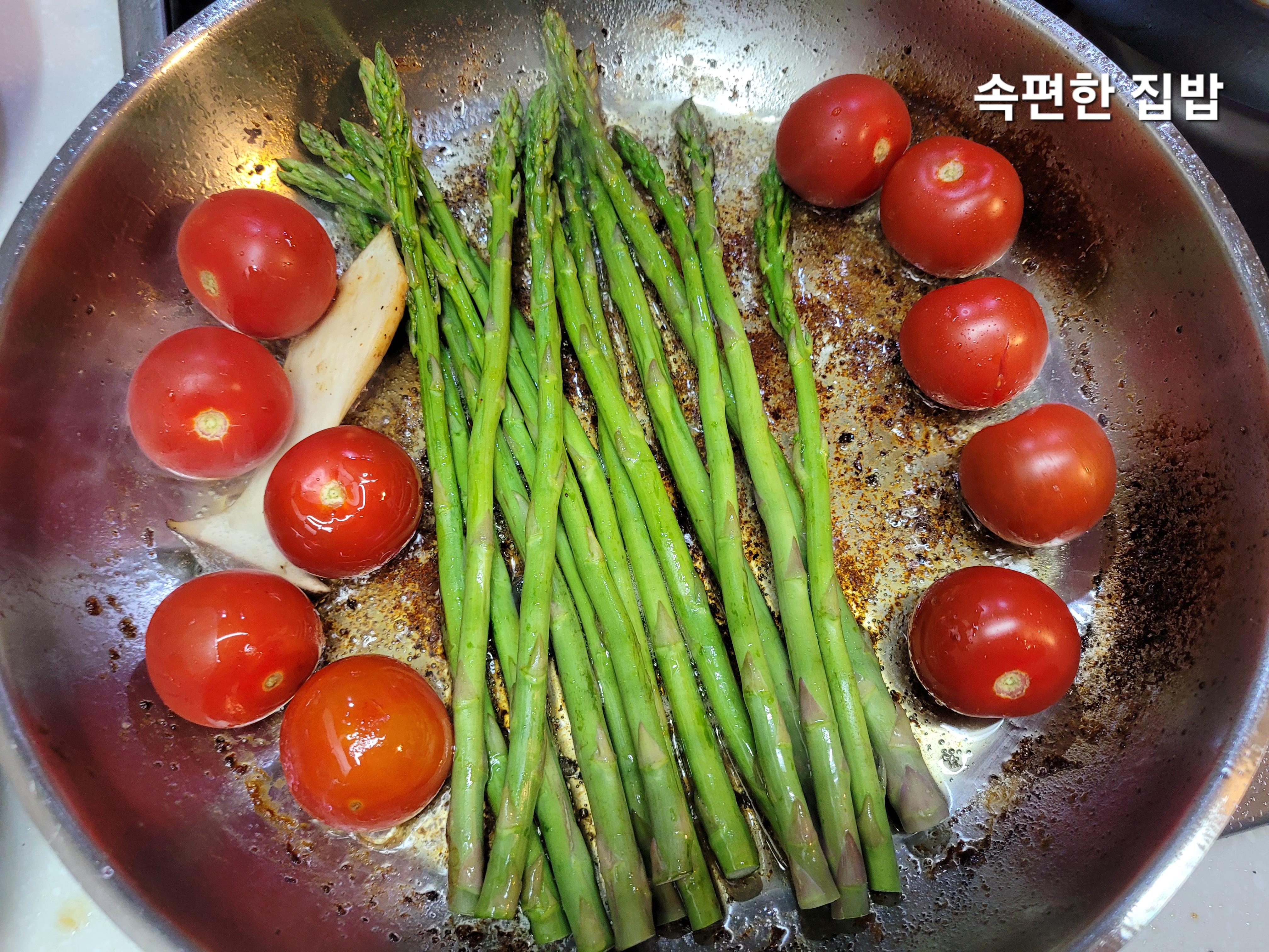 방울토마토, 아스파라거스, 새송이 버섯을 구워줍니다.