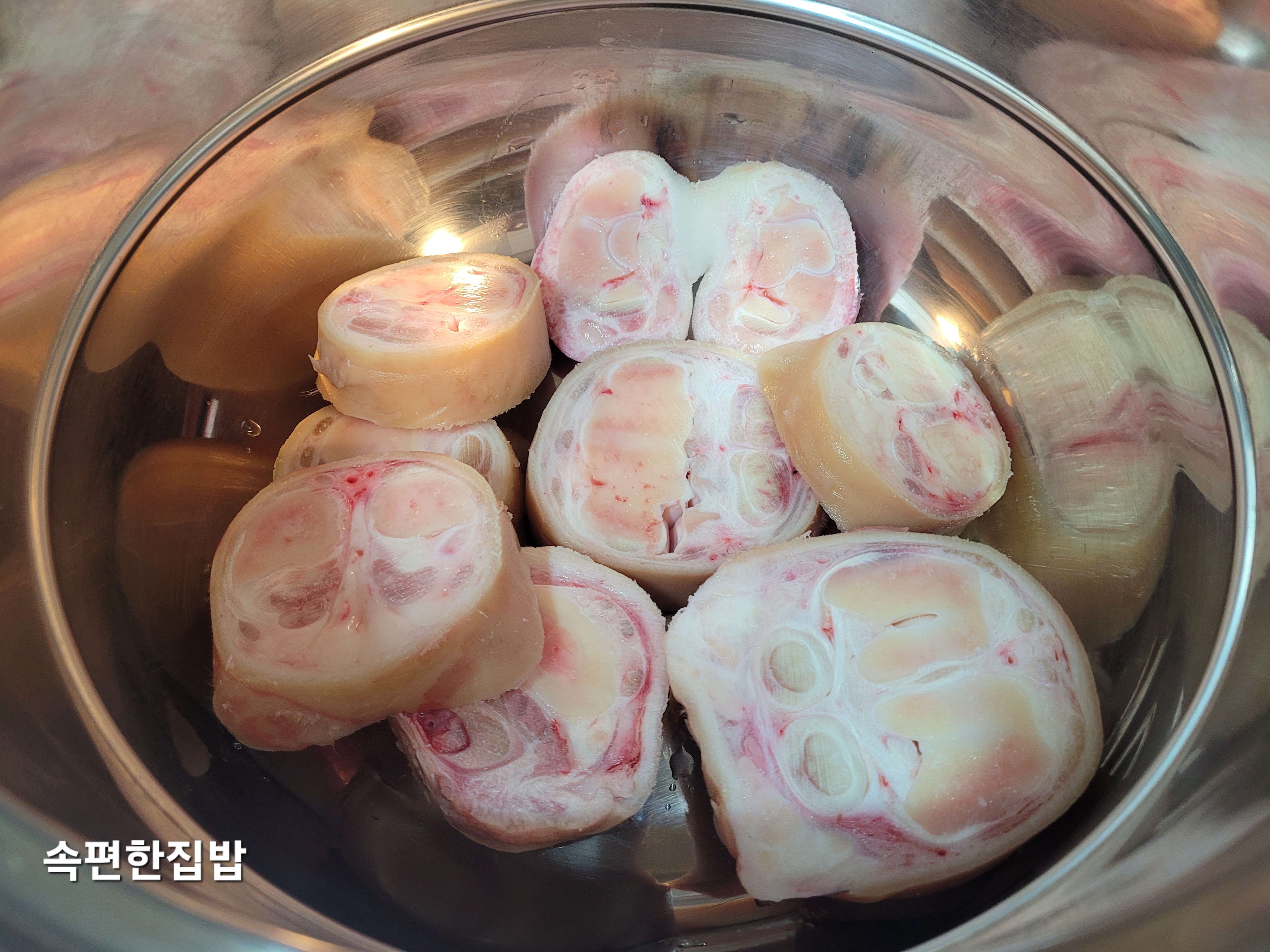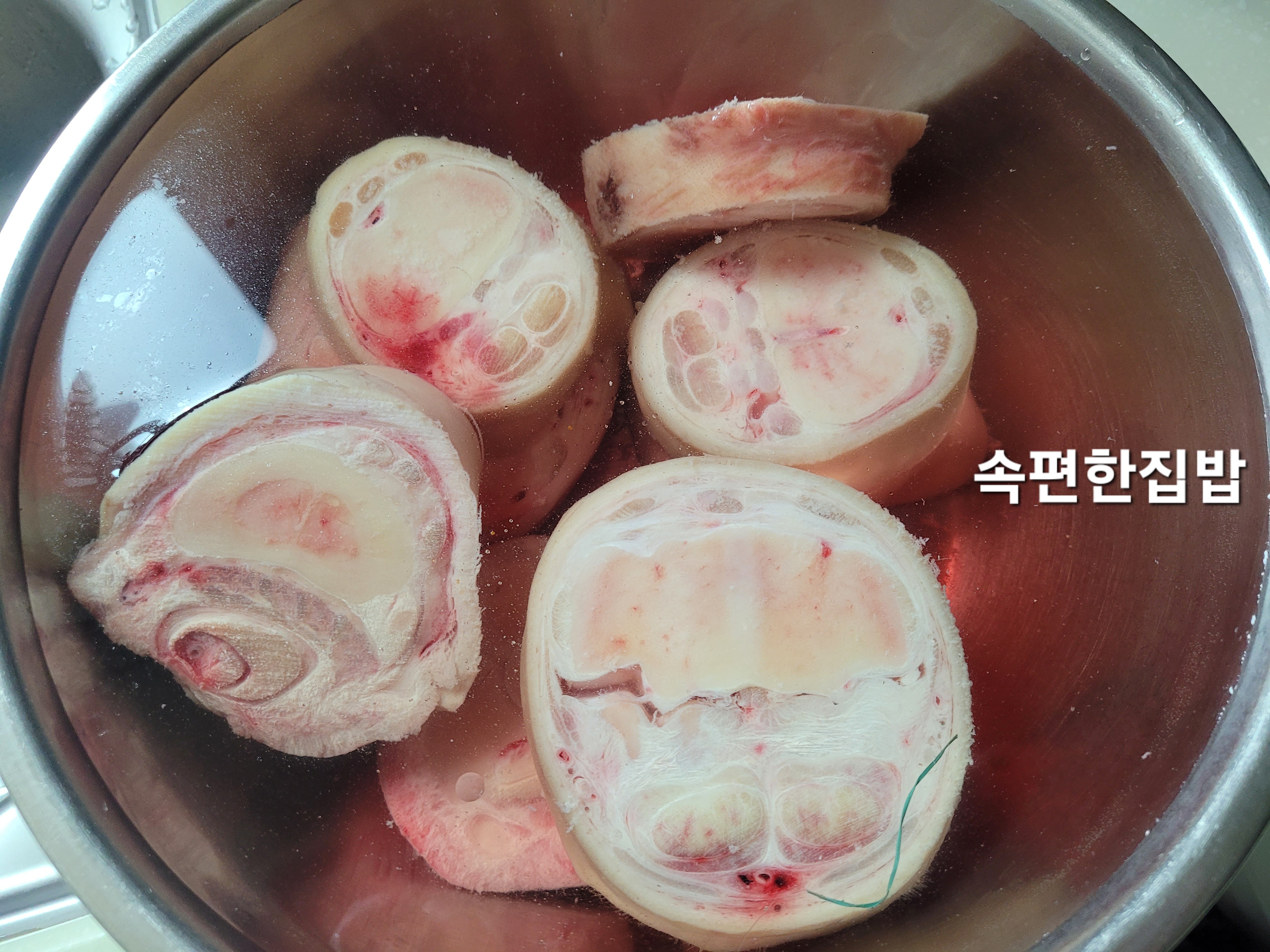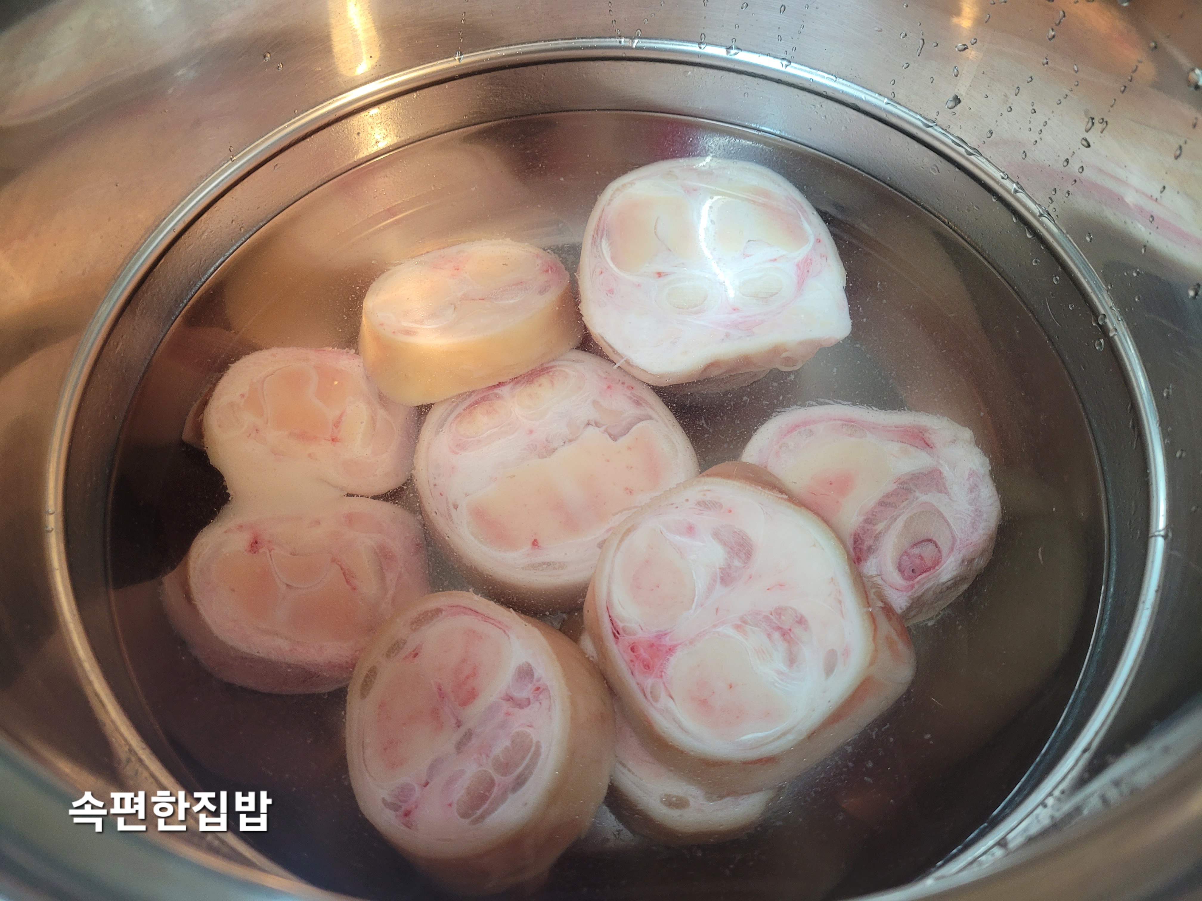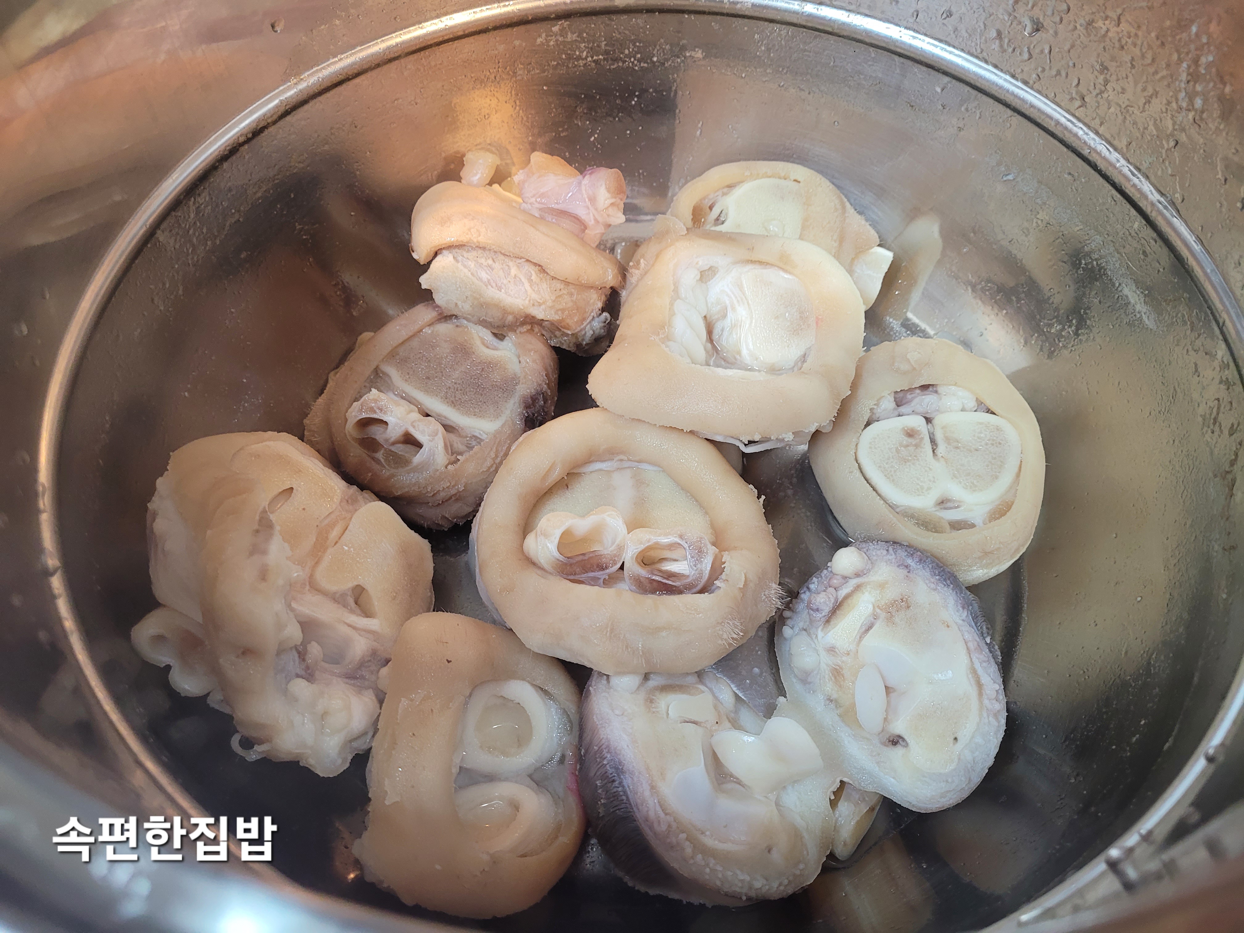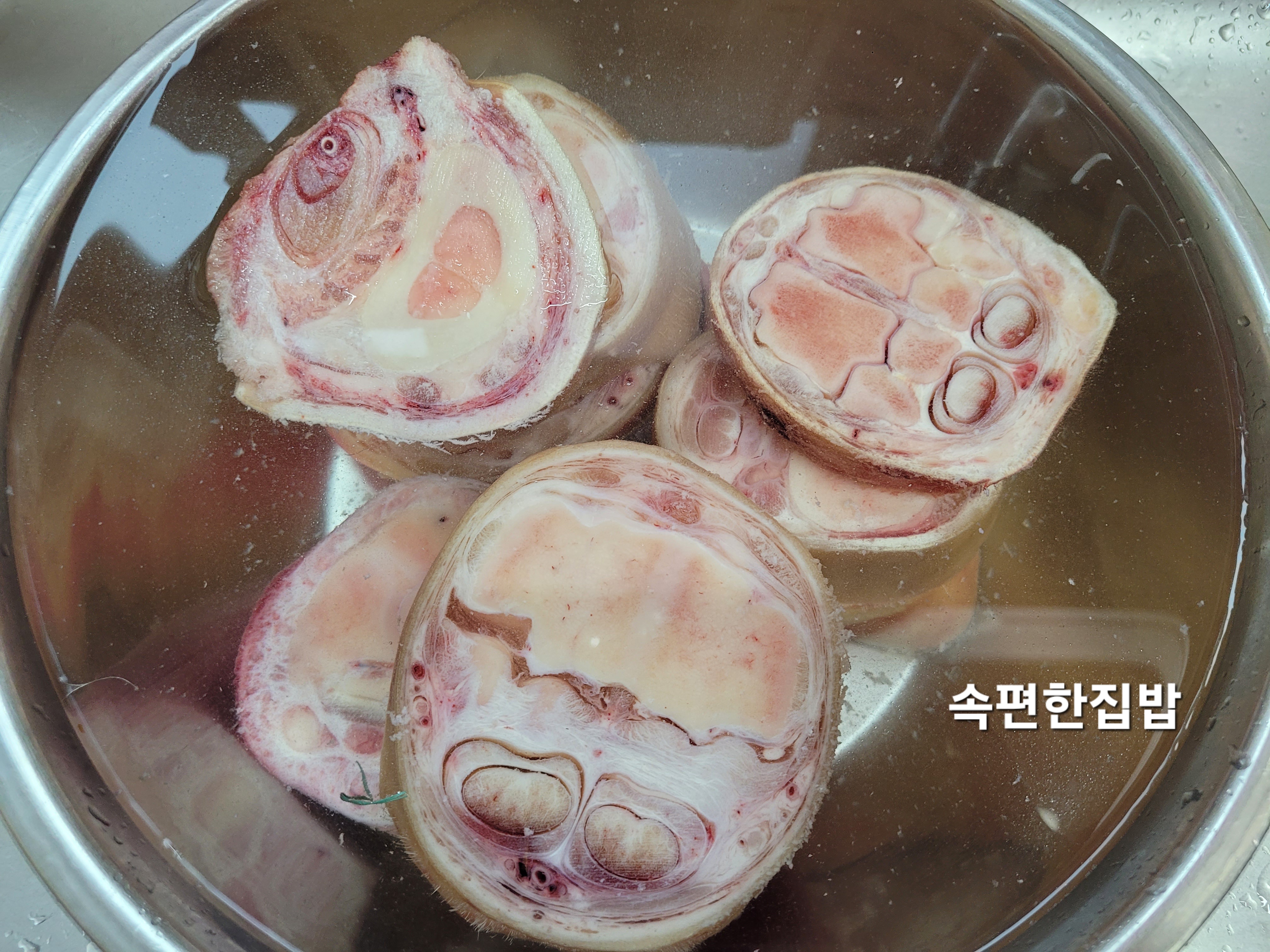 우족을 찬물에 헹구어줍니다.